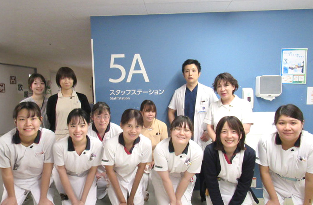 5A病棟は、整形外科を中心とした病棟です。手術を受けられる患者さまの看護が主となりますが、年々高齢化が進むなか、患者さまの入院時からの退院支援が非常に重要となっています。そのため、周術期の看護だけではなく退院支援についても多く学ぶことができ、多職種との関わりも深まります。手術をして元気に退院し、回復期病院へ移られる姿をみると、看護に携われて良かったと日々看護にやりがいを感じています。