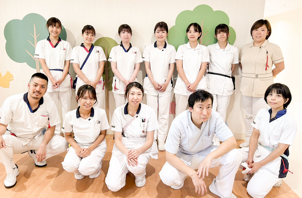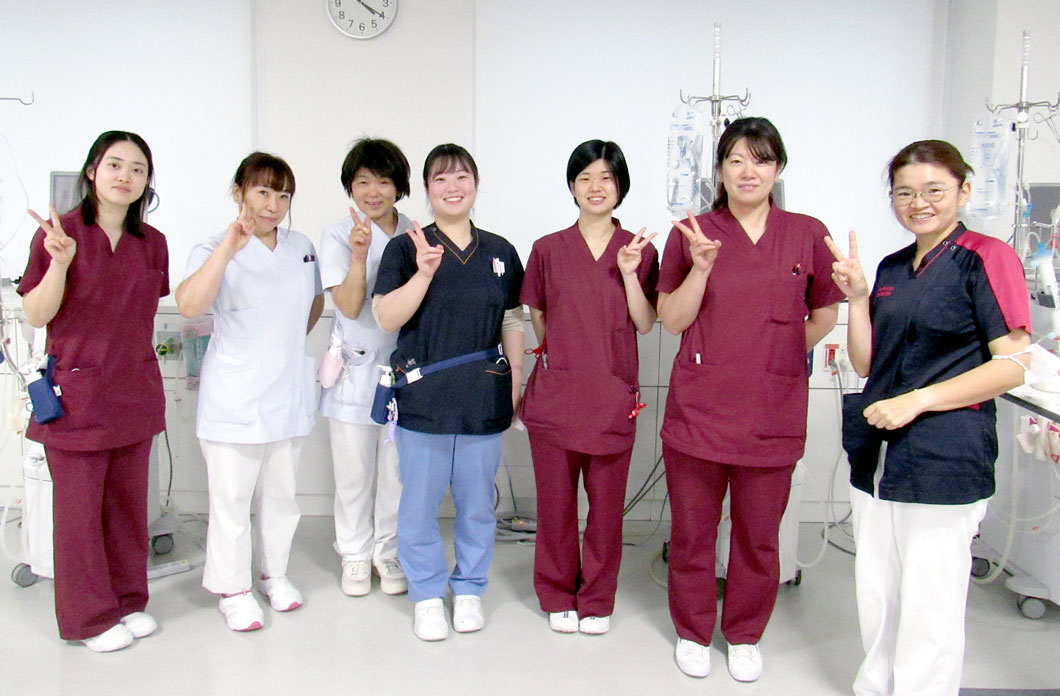 院内は、とても明るい環境で、臨床工学技士の皆さんと協力しながら看護を行っています。長いお付き合いになる患者さまと生活の中のいろいろなイベントを一緒に喜び、悲しみを乗り越えていく、大変やりがいのある部署です。